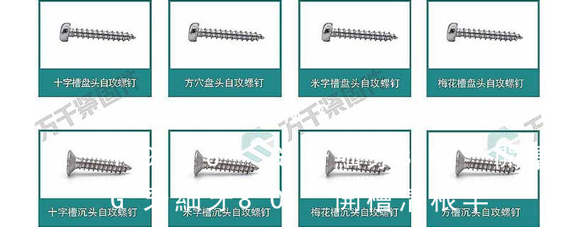 (鐵板牙自攻螺絲) B-2: Plastic Tapping Screw. (塑膠用,自攻螺絲) C: Wooden Screw : 木工螺絲 D: Drywall Screw :水泥墻螺絲 E: Self Drilling Screws鉆尾螺絲(不銹鋼鉆尾螺絲,復合材料鉆尾螺絲) F:膨脹螺絲,四片膨脹螺絲又
